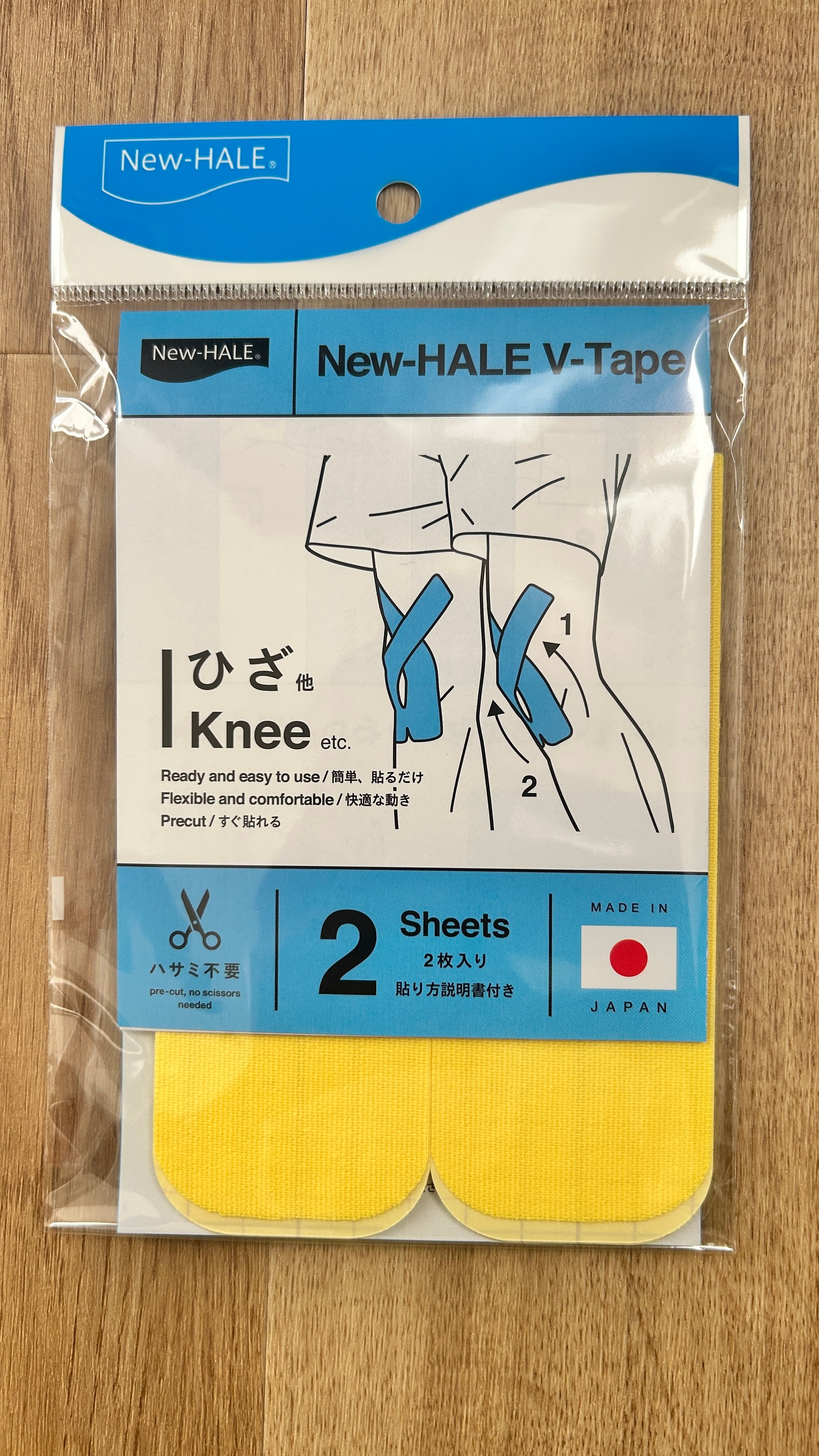 プロスポーツや医療分野で、長年使用されている安心と信頼の品質ブランド、 『New-HALE(ニューハレ)』から誕生した、お手軽にすぐ貼れるカット済みV型テープです。
